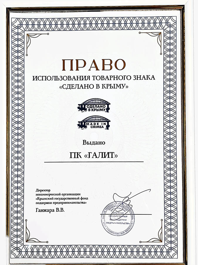 Маркировка «Сделано в Крыму» позволит еще большему количеству компаний стать постоянными партнерами и потребителями качественного продукта ПК «Галит».