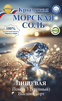 Соль морская пищевая садочная, высший сорт Помол 3 (крупный) Крымский Сувенир «Алмаз» Картонная пачка, 750 г. |
